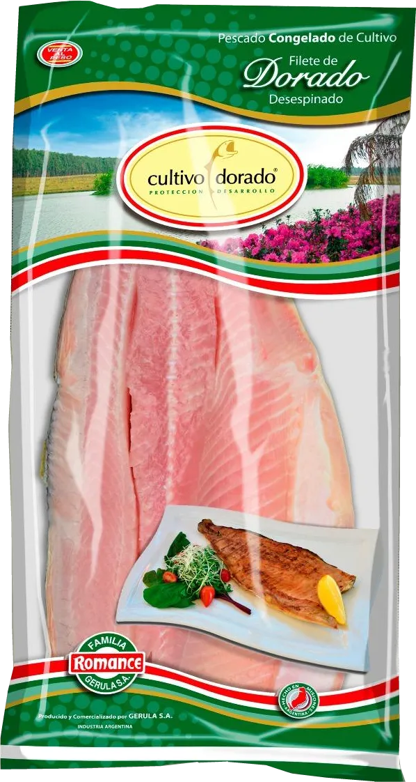 O pescado congelado de cultivo comercializado sob a marca CULTIVO DORADO é propriedade da GERULA S.A., pioneira e principal fornecedora no mercado interno argentino de espécies nativas carnívoras cultivadas, com destaque para o Surubim e o Dourado.